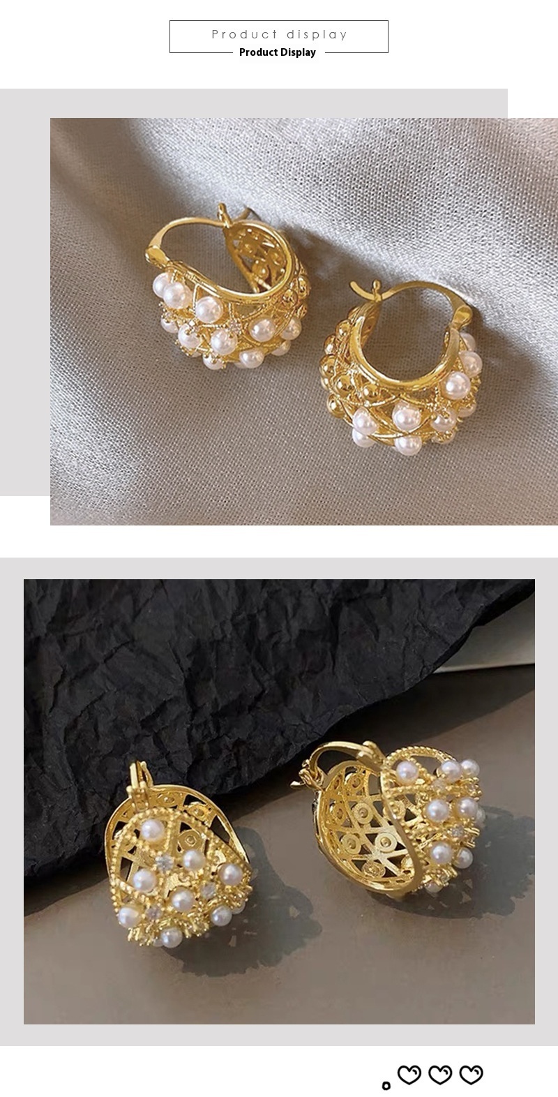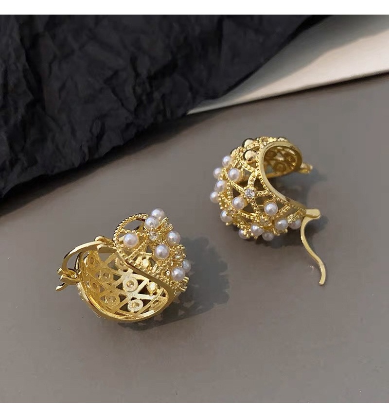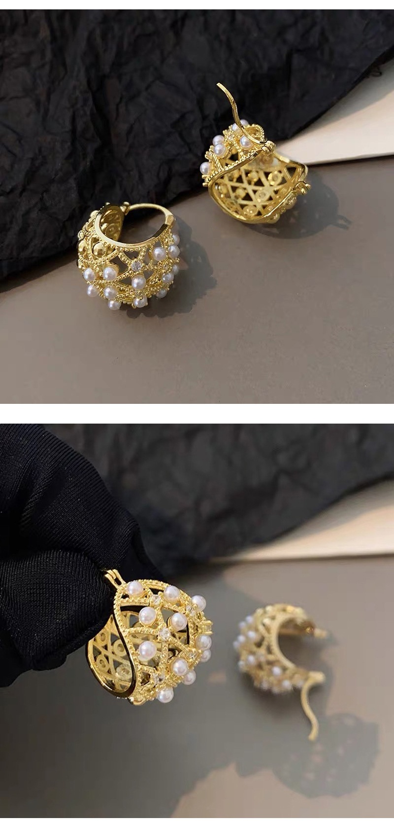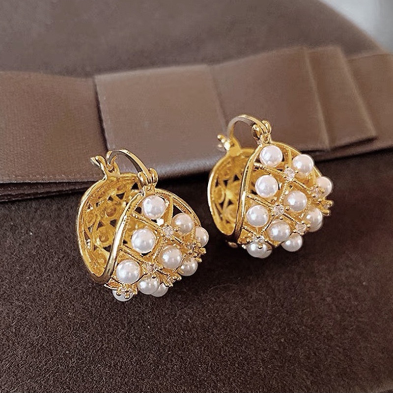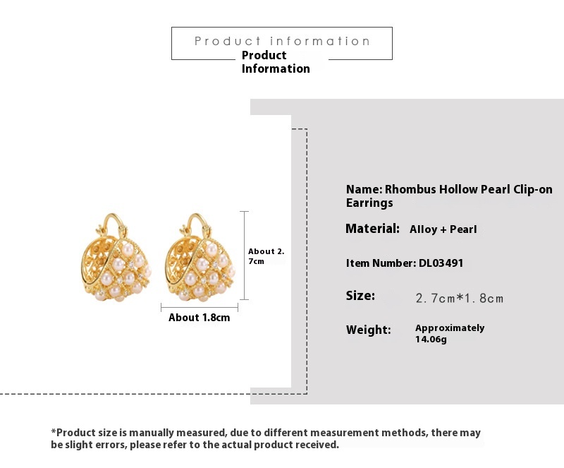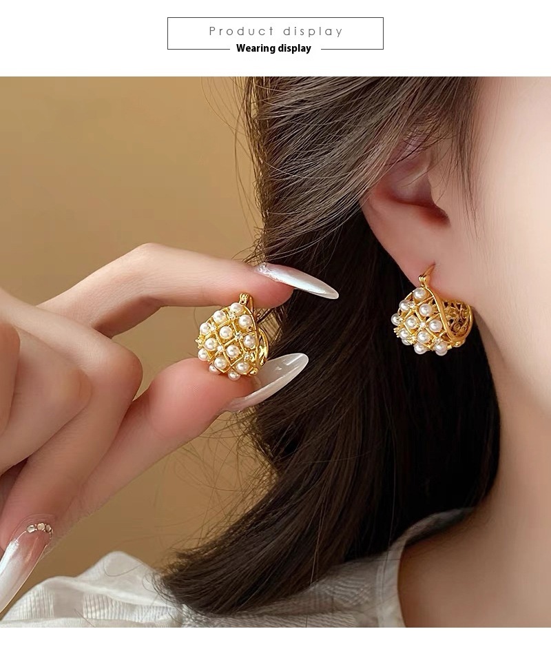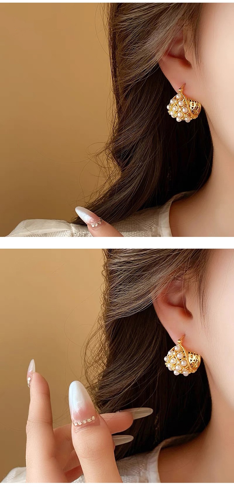 French Rhinestone Pearl Mesh Geometry Ear Clip