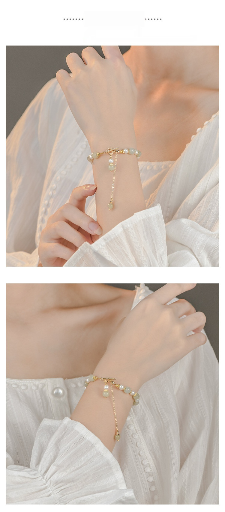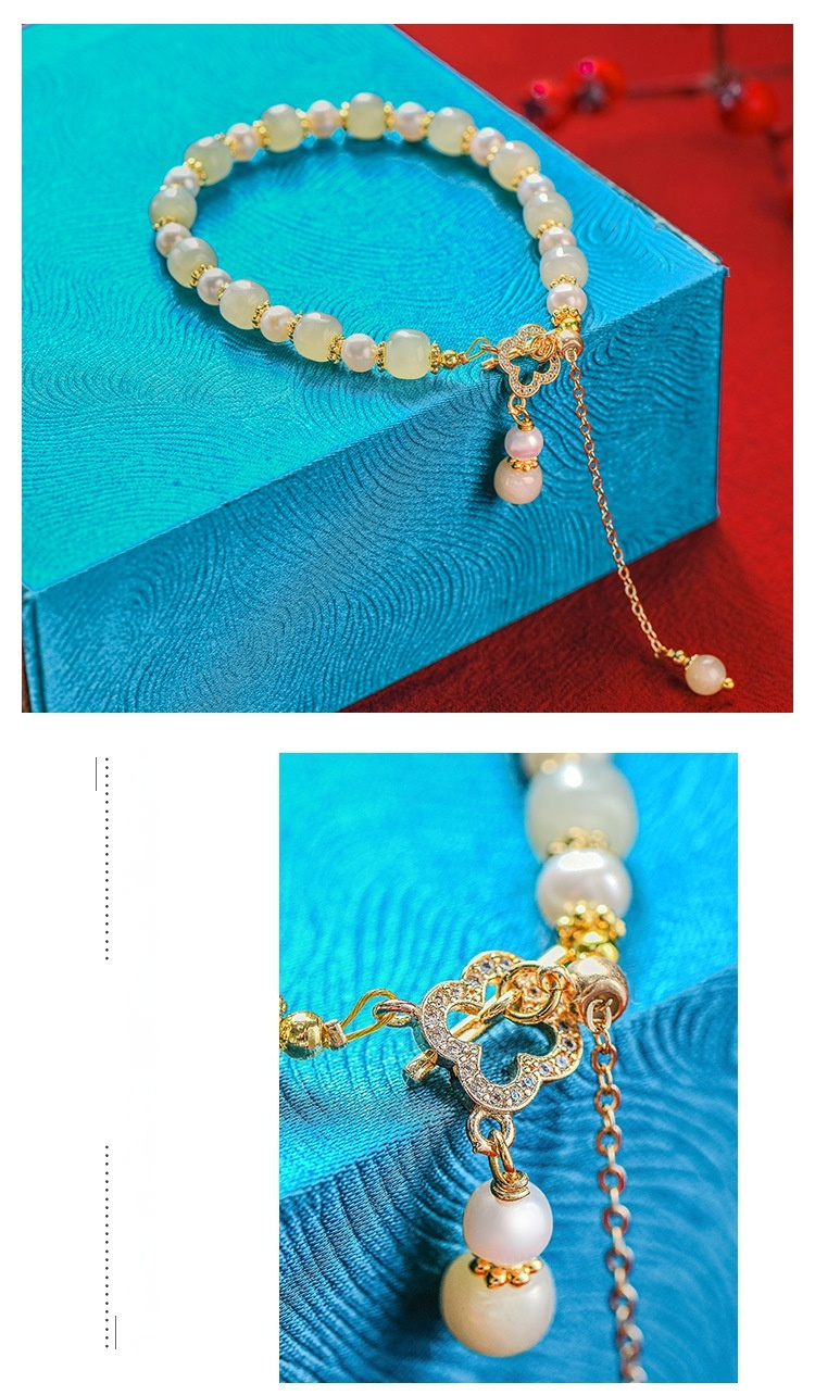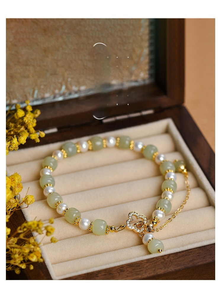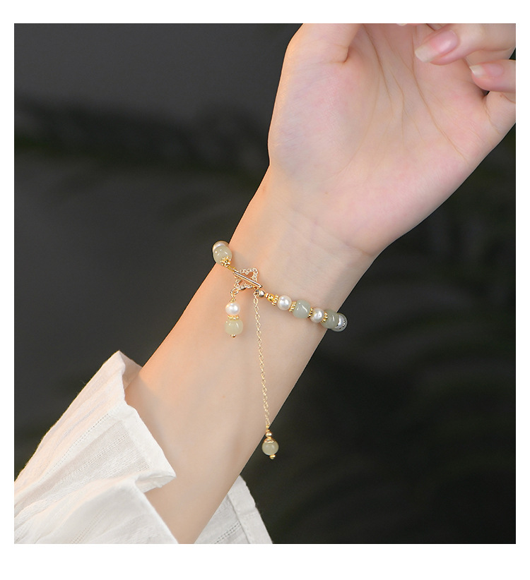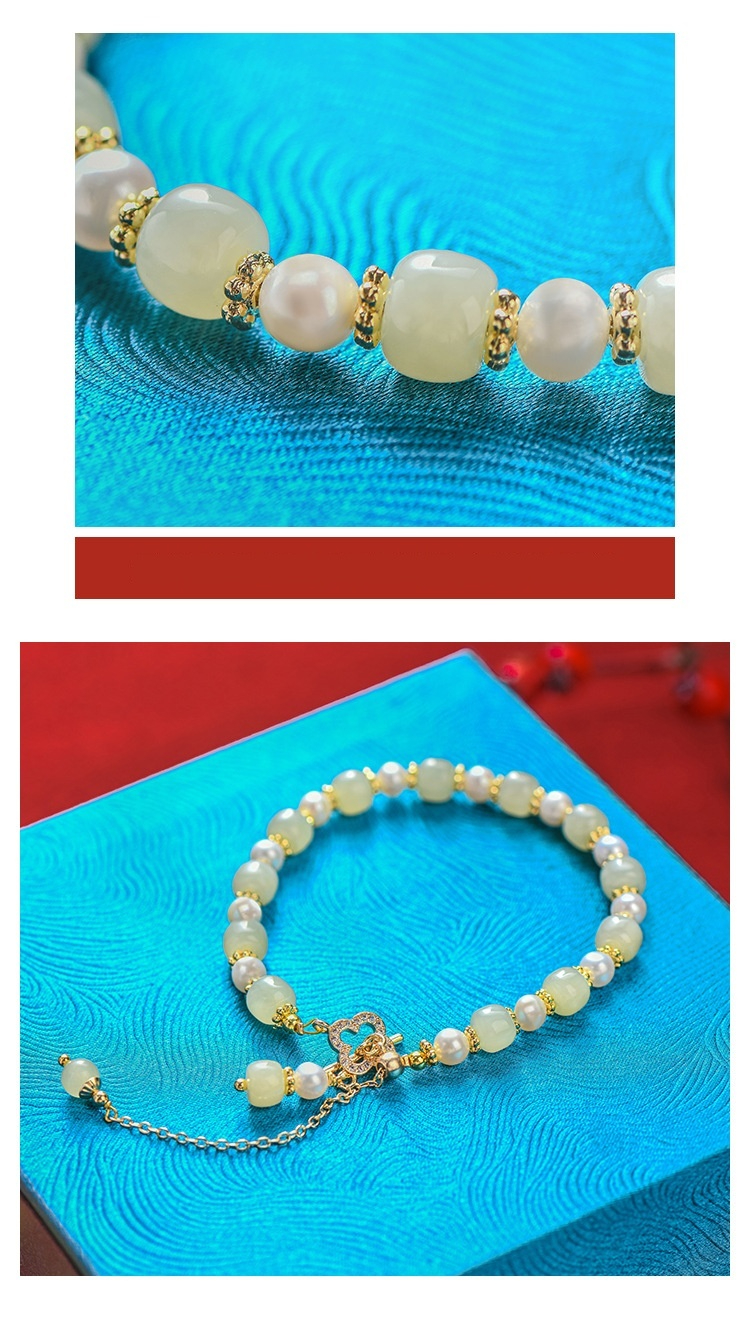 Natural Hetian Jade Pearl Pendant Women's Bracelet