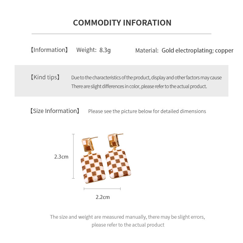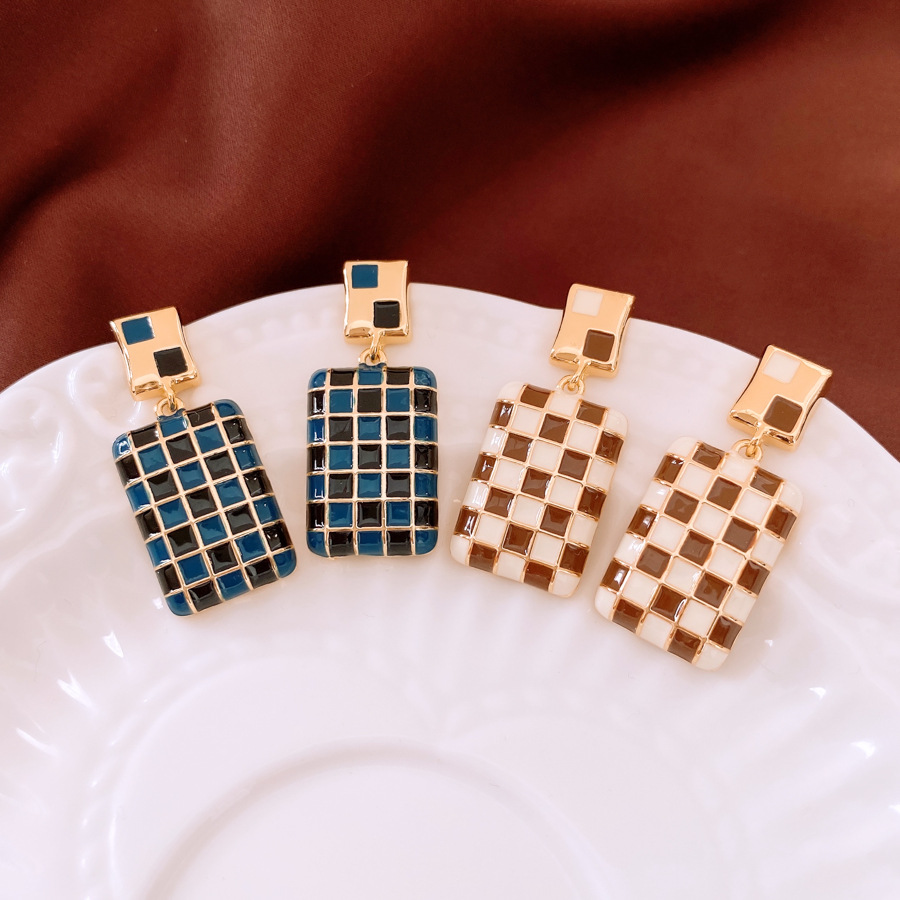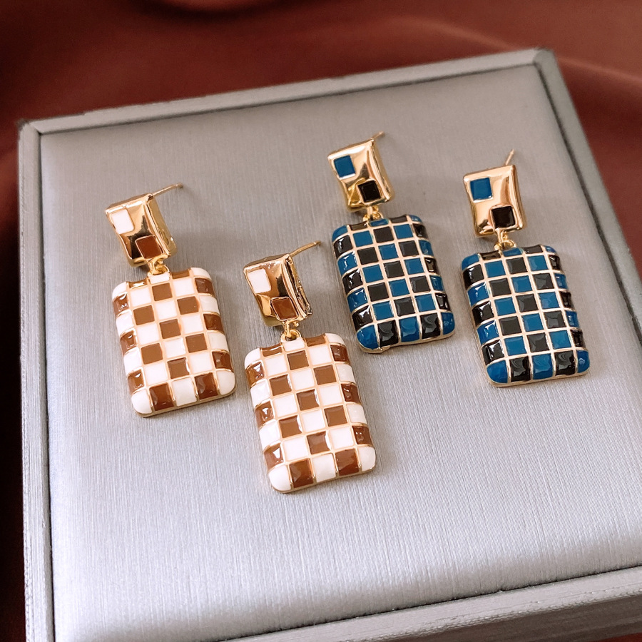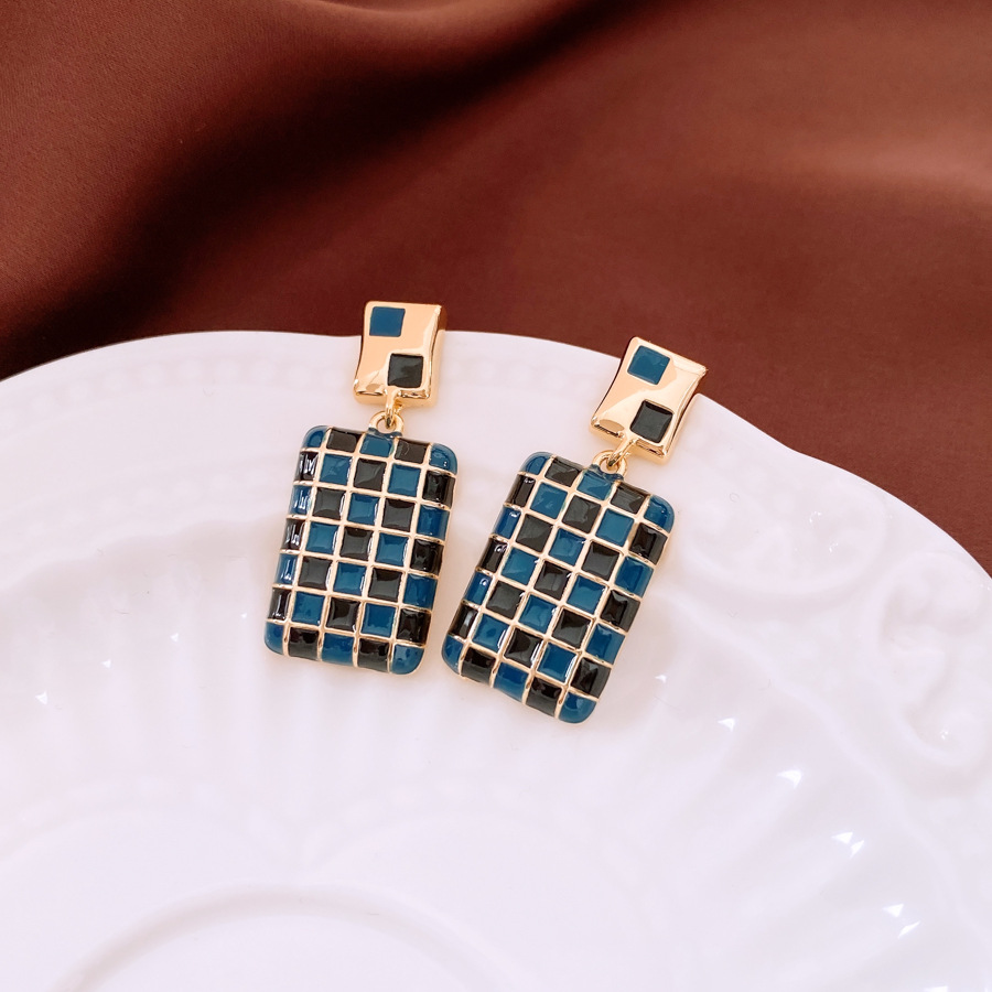 Real Gold Electroplated Silver Needle Oil-drop Rectangular Earrings