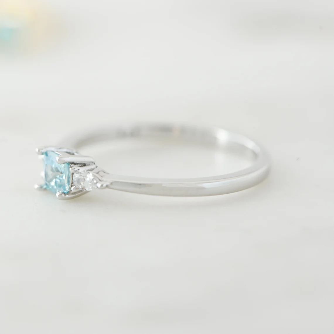 S925 Sterling Silver Blue All-match Square Inlaid Zircon Ring