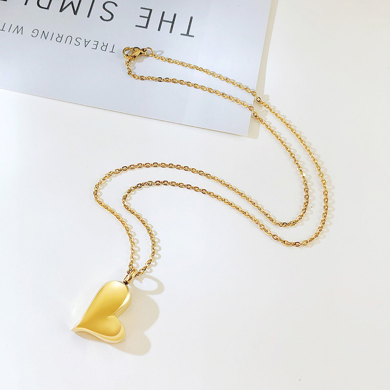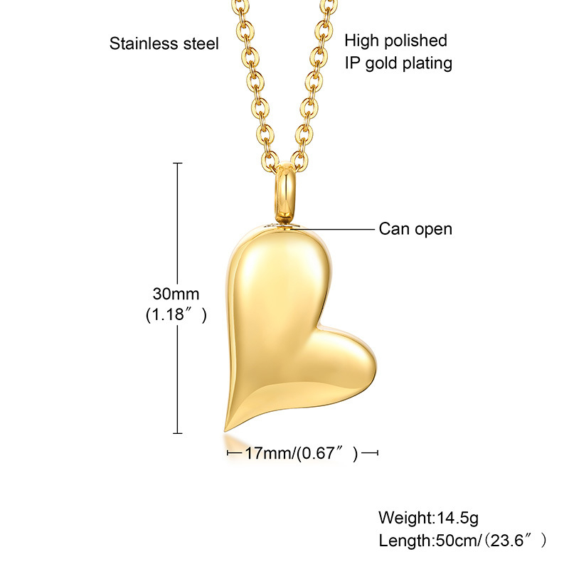 Women's Titanium Steel Peach Heart Urn Can Be Opened Pendant Necklace
