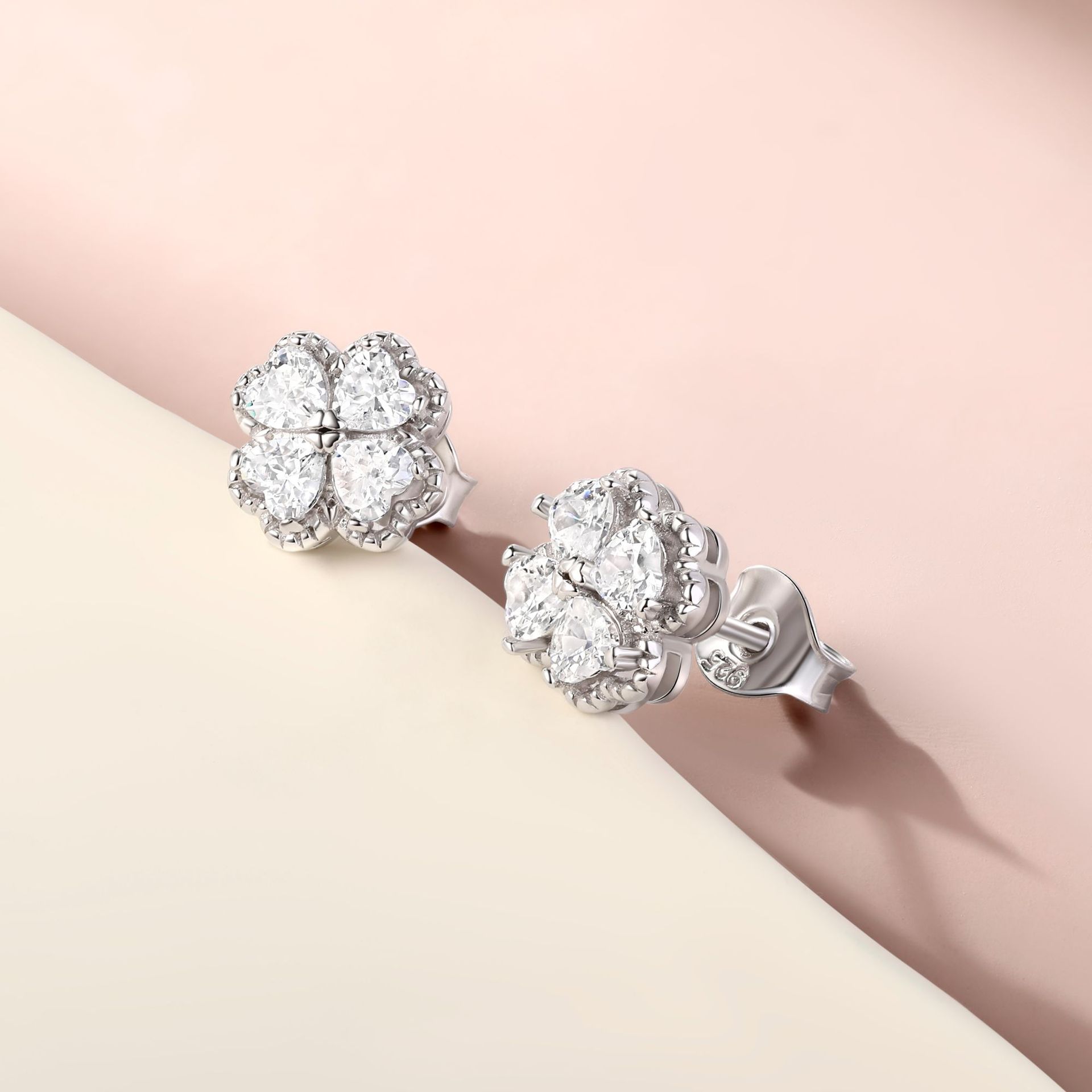 Zeng Yin Four-leaf Clover Ear Team Advanced Sense Love Zircon Earrings